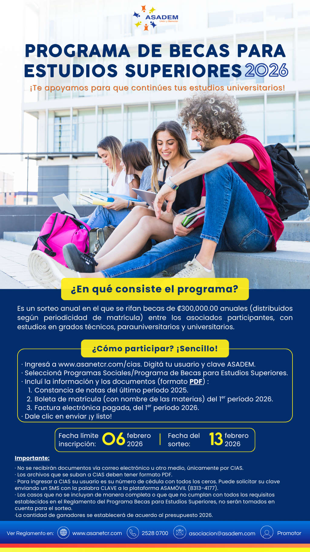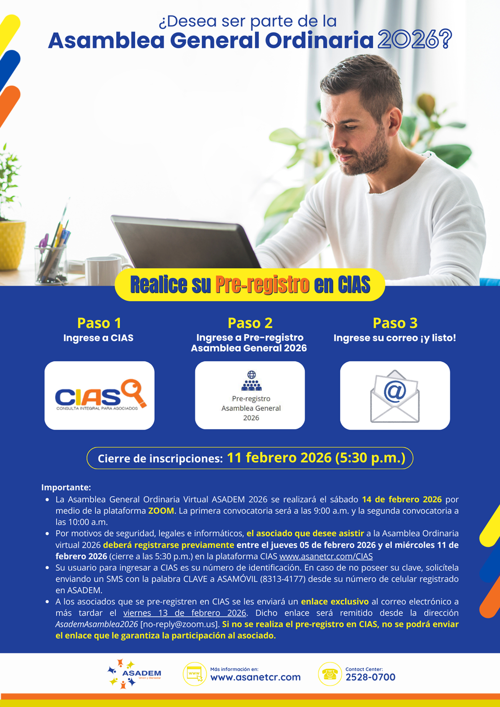 Llená la Encuesta ASADEM 2025 y participá en el sorteo de 12 premios de ₡50,000 c/u. 🎁