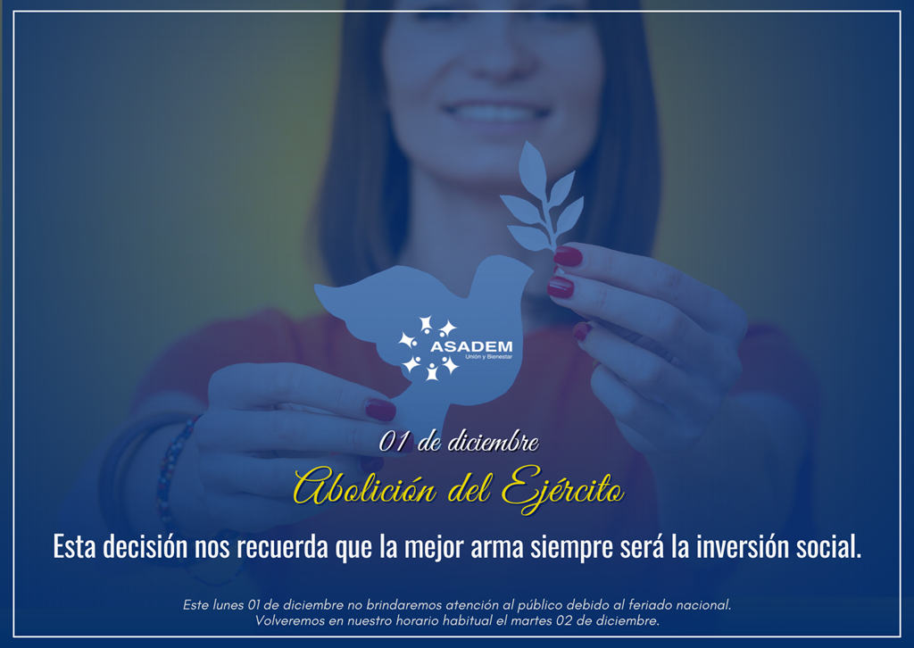 Se advierte al público que ASADEM es supervisada solamente en materia de prevención de legitimación de capitales, financiamiento al terrorismo y financiamiento de la proliferación de armas de destrucción masiva, y además se encuentra sujeta a disposiciones vinculantes de la Unidad de Inteligencia Financiera del Instituto Costarricense sobre Drogas. Por lo tanto, la Sugef no supervisa en materia financiera a ASADEM, ni los negocios que ofrece, ni su seguridad, estabilidad o solvencia.